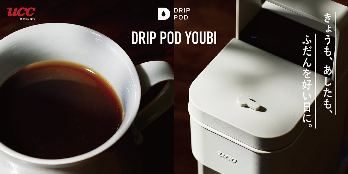 UCC上島珈琲株式会社(本社/兵庫県神戸市、資本金/10億円、社長/朝田文彦、以下UCC)は、カプセル式ドリップコーヒーシステム「ドリップポッド」より、食とデザインを軸として、感性を大切にした良質なライフスタイル事業を手がける株式会社ウェルカム(本社/東京都目黒区、代表取締役/横川正紀)と共同開発したフラグシップモデルとなる新マシン『DRIP POD YOUBI(ドリップポッド ヨウビ)』を9月26日(火)より全国で発売します。また、発売に先駆けUCCドリップポッド公式オンラインストアで9月14日(木)より先行予約を開始します。