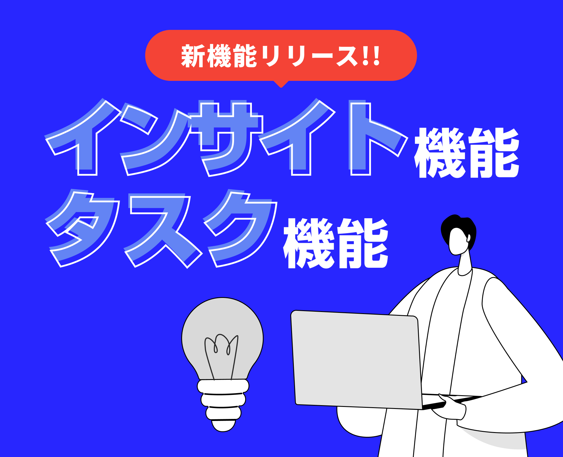 「1. 情報を把握」した後の「2. インサイトを得る」や「3. アクションを実行する」工程でもユーザー様に対して支援ができるよう、「インサイト機能」と「タスク機能」を開発するに至りました。