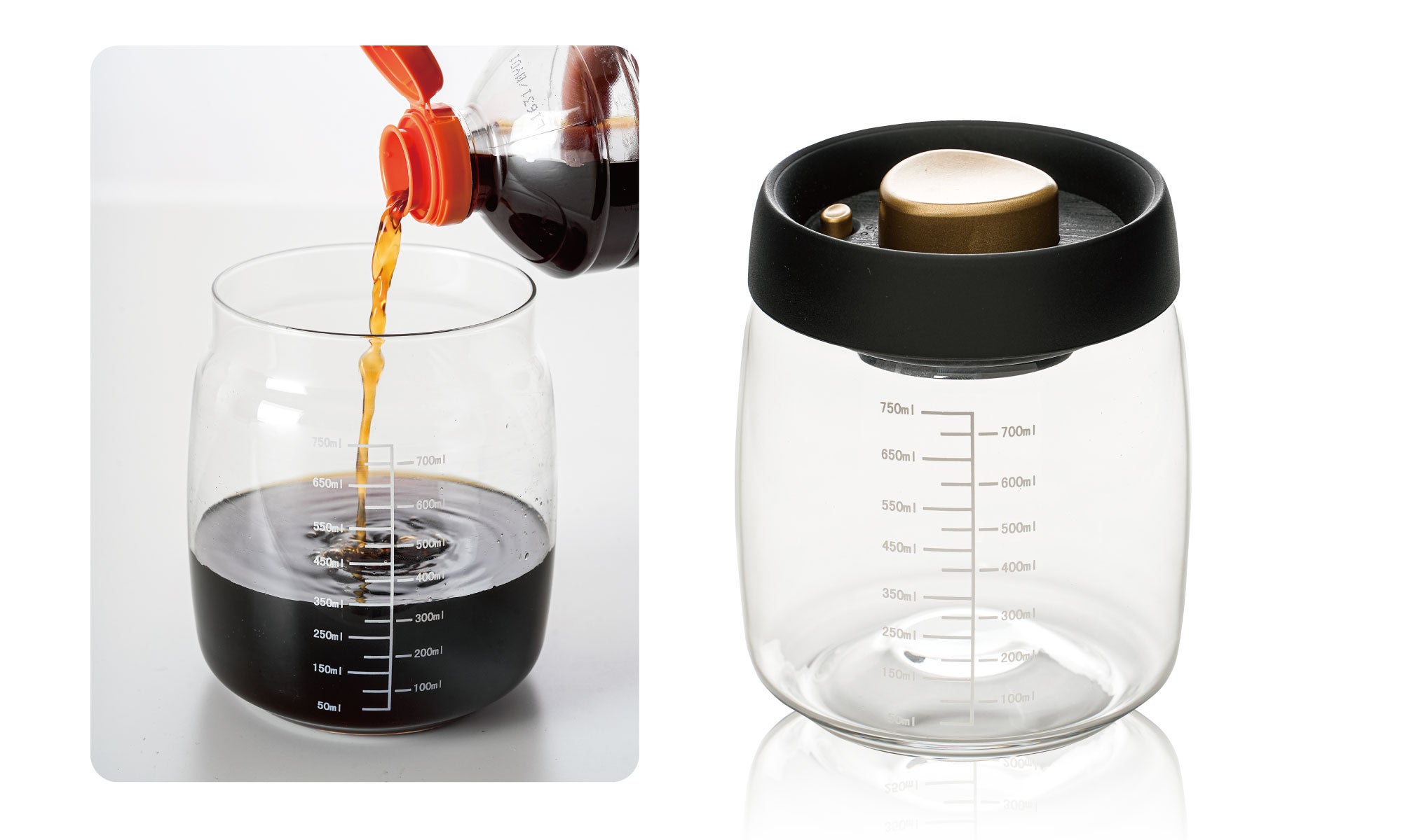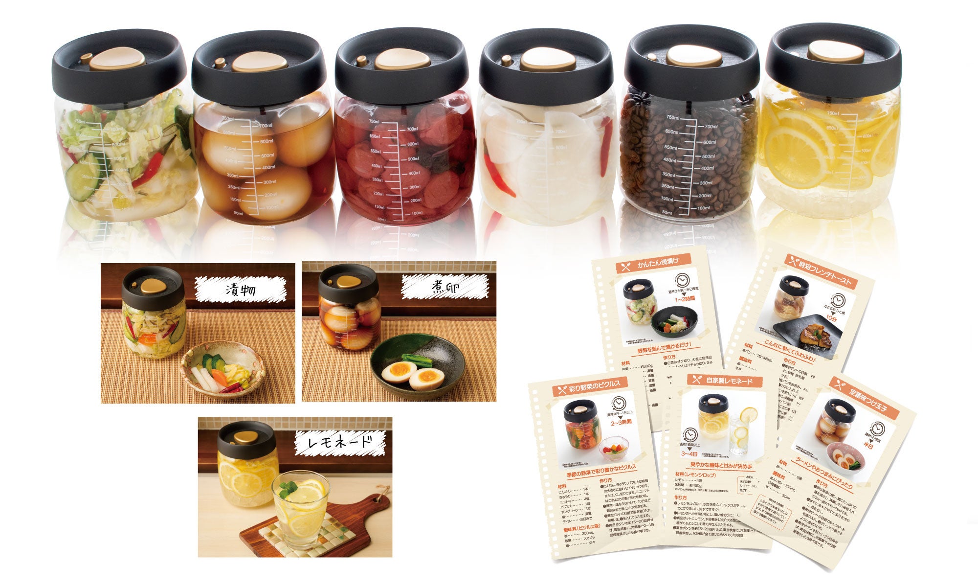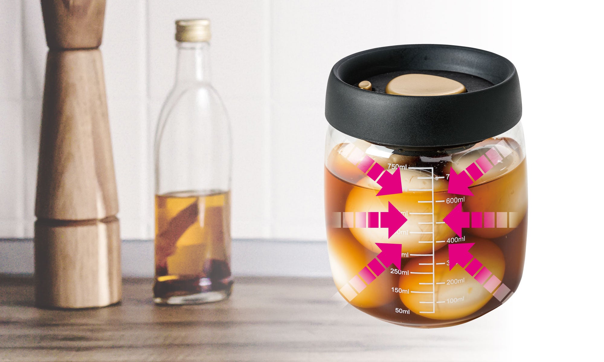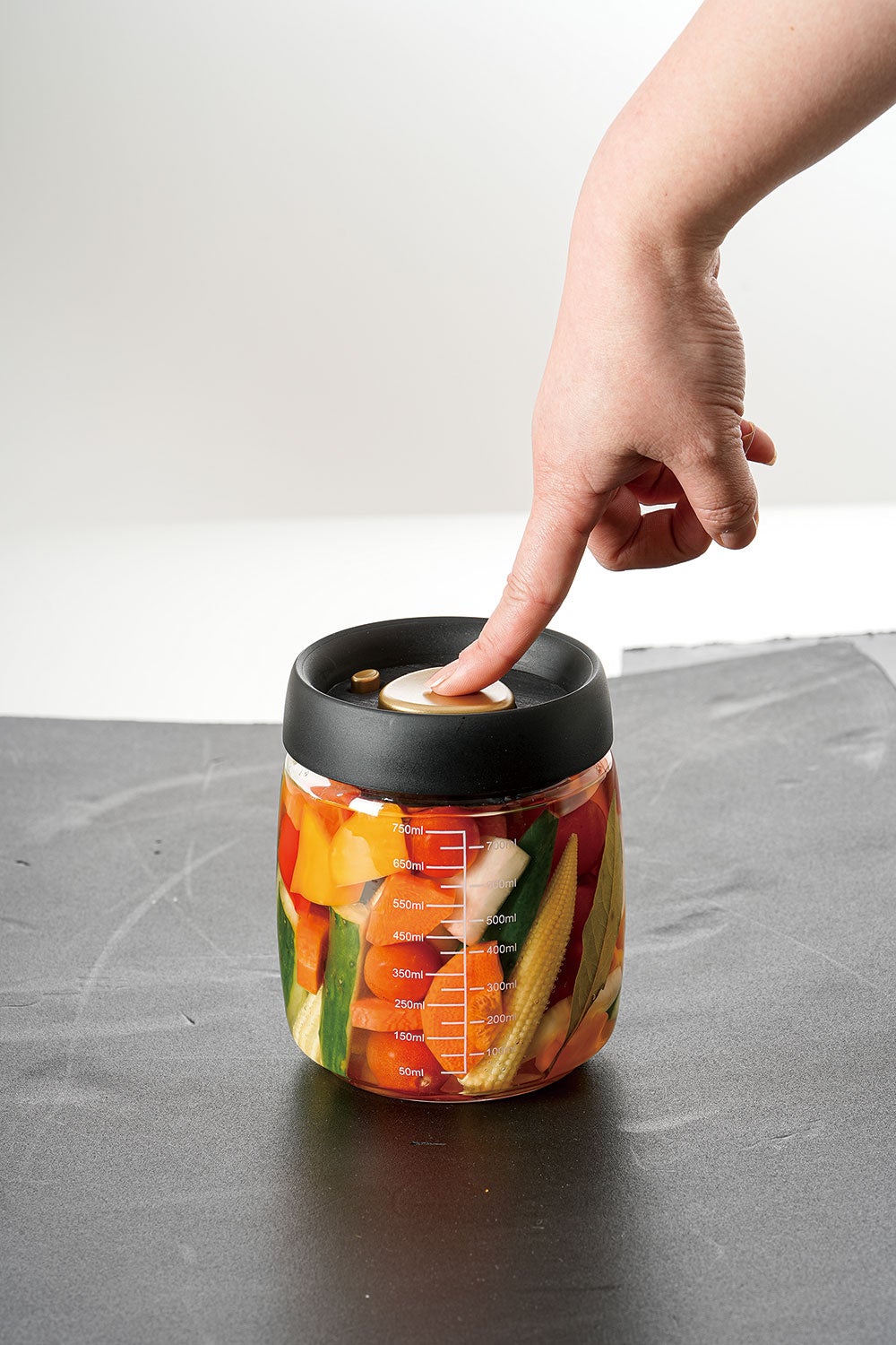 目盛り付き一体型の真空調理&保存ポット!押すだけで簡単に空気が真空状態に!