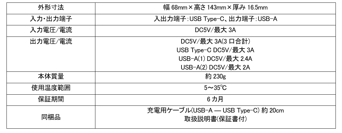 新色ベージュを追加、USB-A(2口)とUSB Type-Cの計3口で機器3台を同時に充電(*1)可能