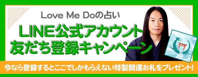 有名芸能人の結婚やスキャンダルから自然災害、政治・経済まで様々なニュースを的中させる『予言的中の占い師』Love Me Do。現在、月額公式サイト『ラブちゃん占い』にて、LINE公式アカウントに友だち登録いただくと『ラブちゃん占い特製開運お札』がもらえるキャンペーンを開催中です。このお得な機会をどうぞお見逃しなく!