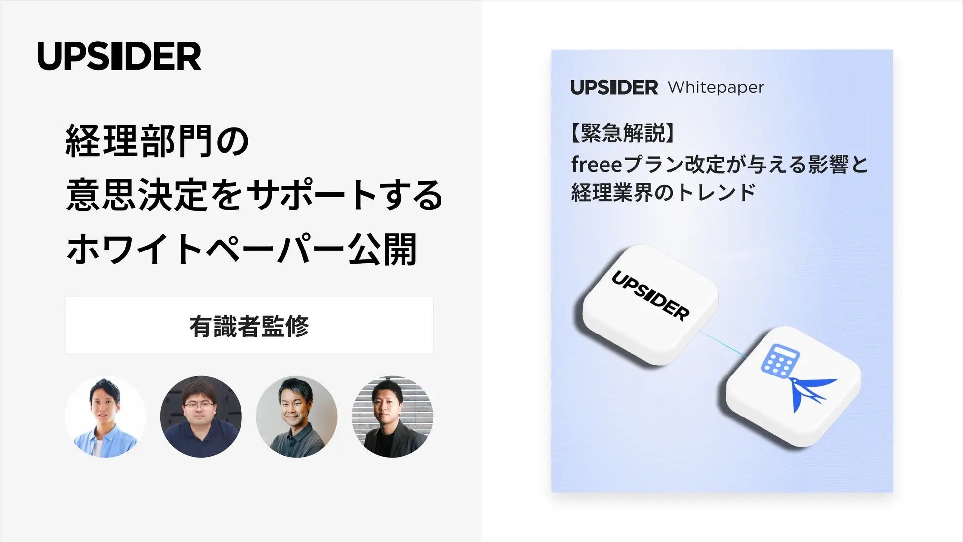 今回の「freee会計」プラン改定では、API連携の利用制限に関する内容も含まれており、当社にも多くのご相談、ご質問が寄せられました。そうした背景を踏まえ、情報を整理して広く共有することが、UPSIDERユーザーのみならず多くの企業の経理部門をサポートできるのではと考え、当社は2月29日(木)に関連情報をまとめたホワイトペーパーを公開いたしました。