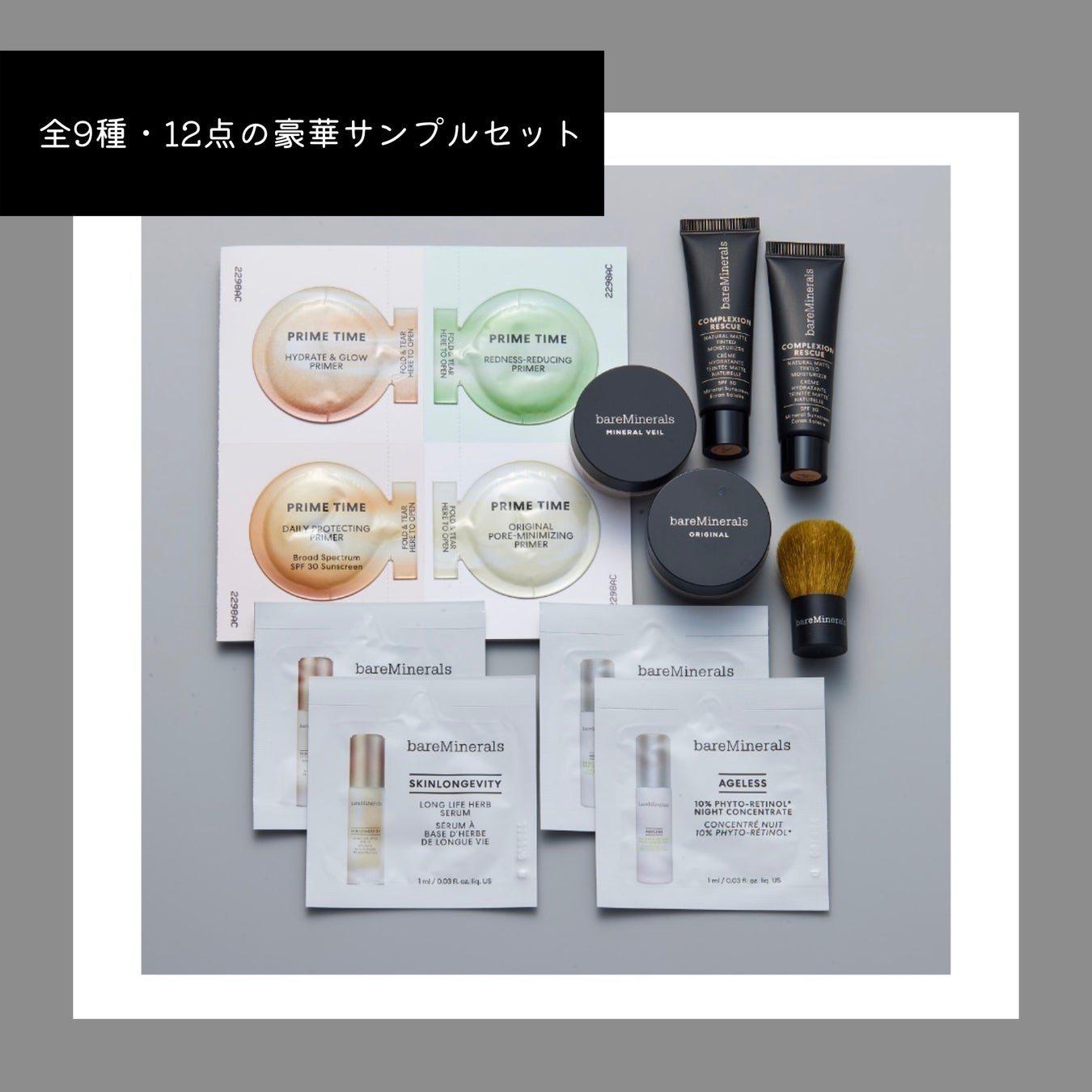 注目のスペシャルアイテムは、美容誌などでアワードを受賞し、SNSでも話題になった、今年発売の新製品を加えたベースメイク アイテムのサンプルセット。持ち運びにも最適なサイズになったベースメイクです。ベアミネラルの魅力が詰まったブランドブックとともに、ぜひお楽しみください。