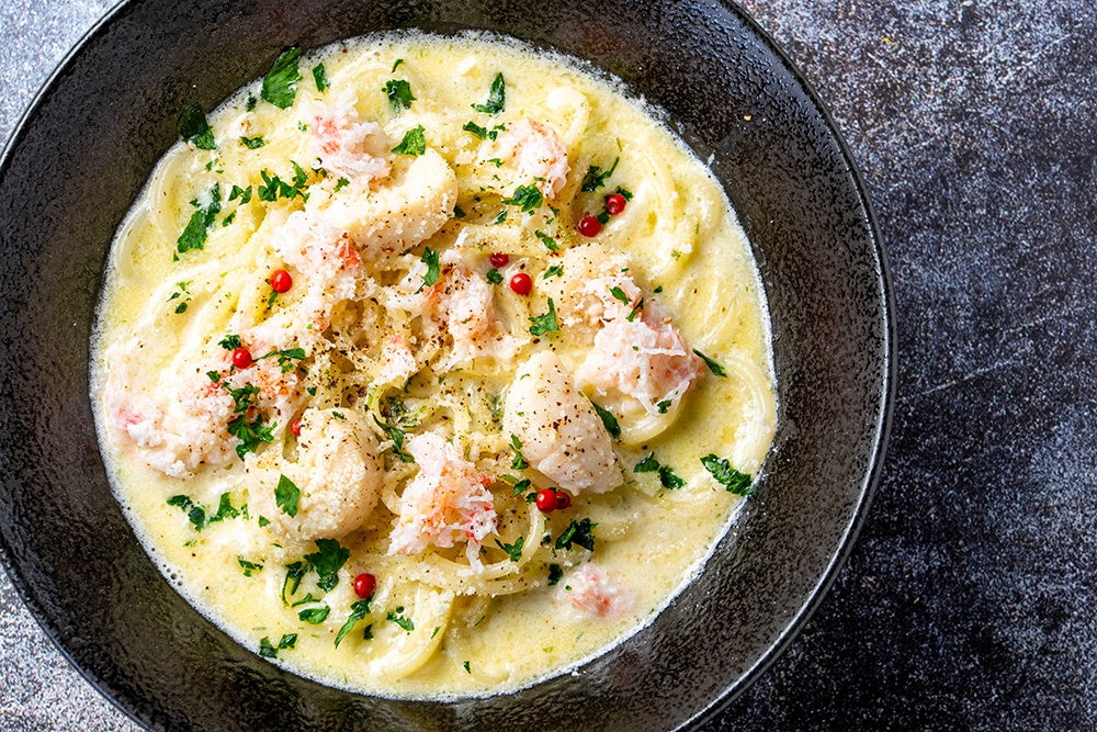 第2弾のパスタは、北海道産帆立と紅ズワイガニの贅沢具材に、醤油やバターを隠し味で使用した、濃厚でコクのあるクリームスープパスタに仕上げました!