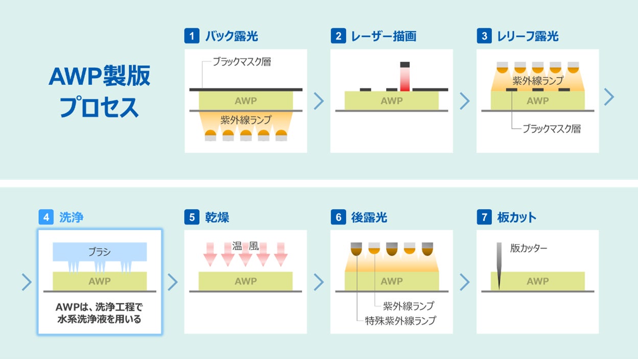 ※2 「AWP」(Asahi Water washable Plate):印刷版の製作工程において、従来の有機溶剤系洗浄液から水系洗浄液に変更することで、有機溶剤の使用をなくした旭化成独自の製品。