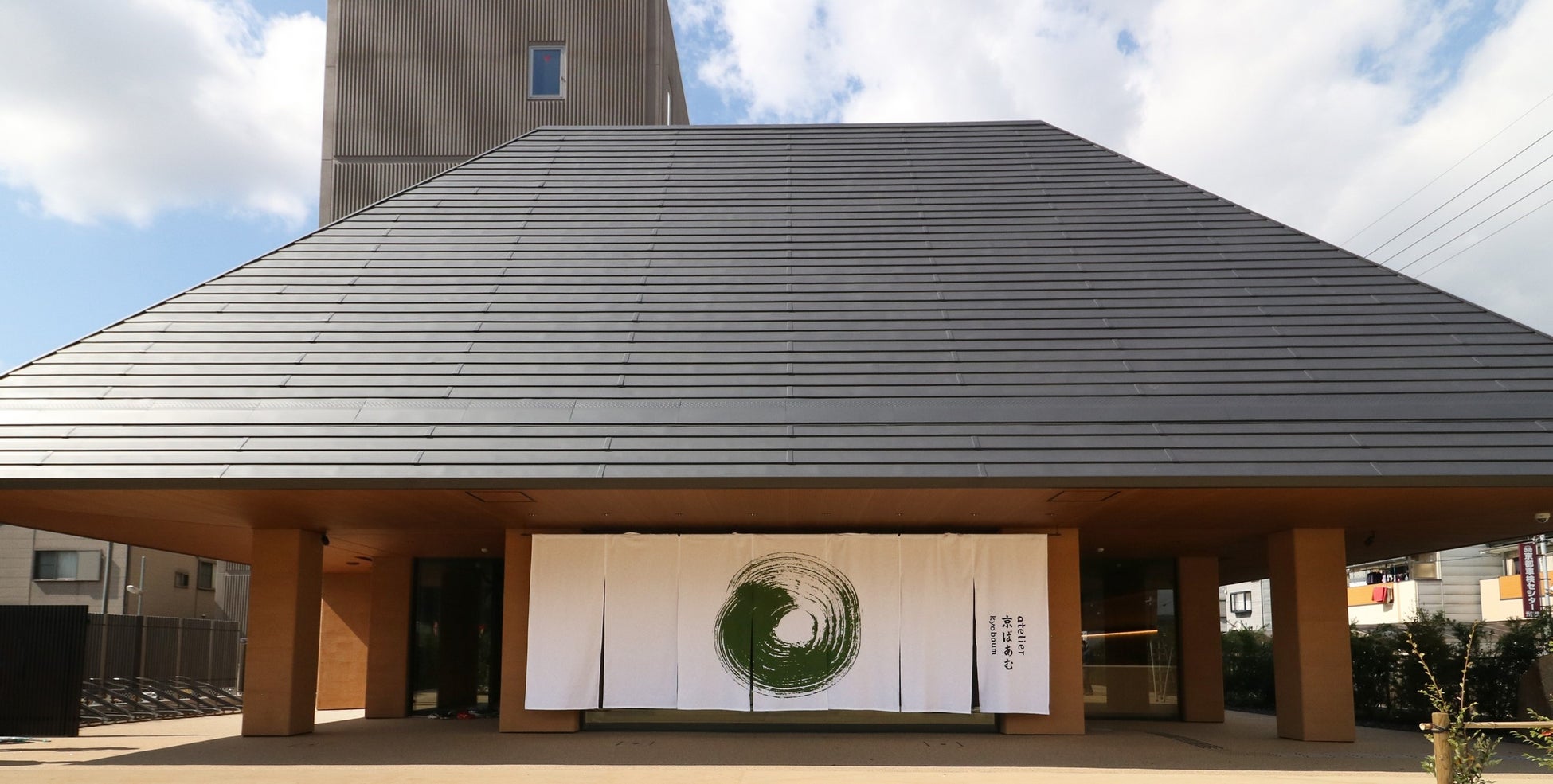 2023年11月 京都市南区にオープン。ショップ・工場・カフェを併設し、随所に「京都」「抹茶」「バームクーヘン」を感じる仕掛けを盛り込んだ、京都最大級のお菓子のミュージアムです。京ばあむを製造する様子は、2階の工場見学通路より無料で見学できます。抹茶のミニバームクーヘンを焼き上げる体験プログラムや季節限定のイベントなどを実施。