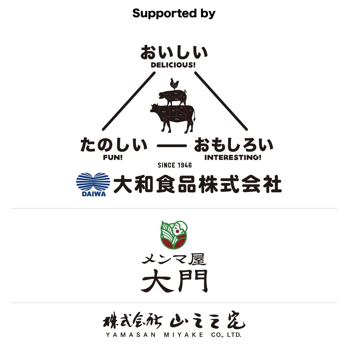 近鉄百貨店株式会社、株式会社ニップン、ミネヤ食品工業株式会社、タケダハム株式会社、株式会社TMライン、HELLO EARTH STUDIO、サラヤ株式会社、岡山フードサービス株式会社、株式会社セブンスイノベーション、株式会社おもてなし、株式会社cotof、株式会社ALL WIN、株式会社OCEANS、有限会社チャンス、株式会社スカイスクレイバー、株式会社リバティー、株式会社バンジー、株式会社平田商店、株式会社フレッシュ青果、ノース・ウォーター株式会社、株式会社太伸、株式会社丸山製麺、伊丹食鳥株式会社、株式会社鍵本産業、株式会社ショクリュー、静光産業株式会社、太陽製麺所株式会社、有限会社徳島屋、株式会社TRAGE、有限会社八百増、株式会社ogura-drive、AIT株式会社