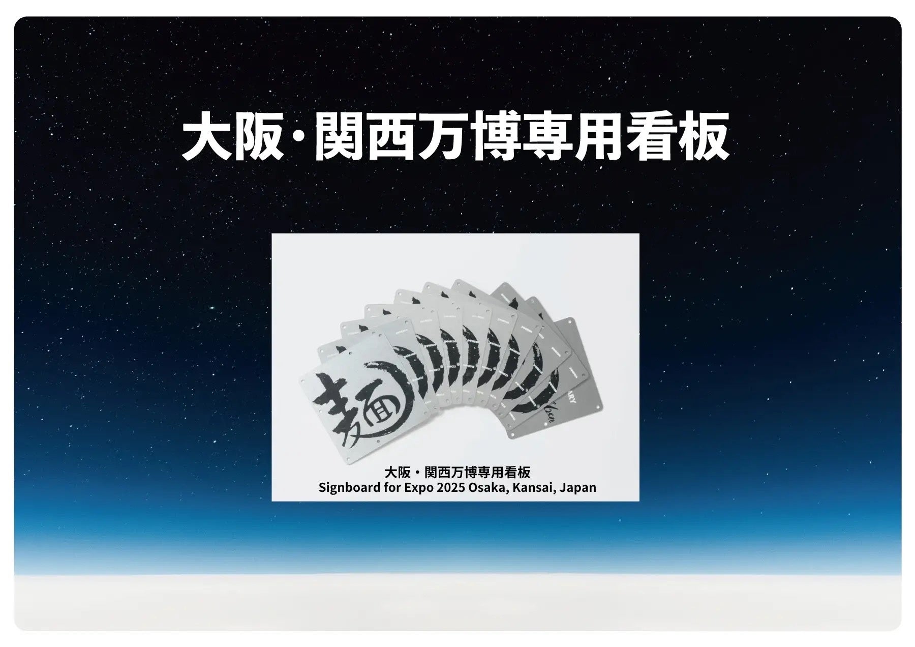 また、宇宙プロジェクトの目的の一部として、UNCHI株式会社は2025年の大阪・万博出店を目指し、大阪代表ラーメン店として宇宙空間に打ち上げられた材料は地球に帰還後、1970年⼤阪万博で来場者に感動を与えた「⽉の⽯」にならい、「隕石ラーメン鉢を作るための土」をもとに「隕石ラーメン鉢」を作成し、宇宙から帰還した「2025年日本国際博覧会(以下 大阪・関西万博2025)専用看板」と共に人類に宇宙は手元まで来ていることを伝えます。