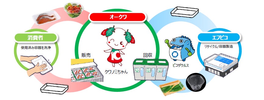 株式会社エフピコ(代表取締役会長:佐藤 守正、以下「エフピコ」)と株式会社オークワ(代表取締役社長: 大桑 弘嗣、以下オークワ)は、和歌山県和歌山市に本拠を置き、大阪、奈良、三重、兵庫、愛知、岐阜、静岡の152店舗(2024年2月21日現在)を対象に、使用済み食品トレーをお店で資源として回収し、新たな食品トレー・透明容器に生まれ変わらせ、再びお店で積極的に「エコトレー」「エコAPET」を使用する、水平リサイクルを促進するための協働を開始しました。