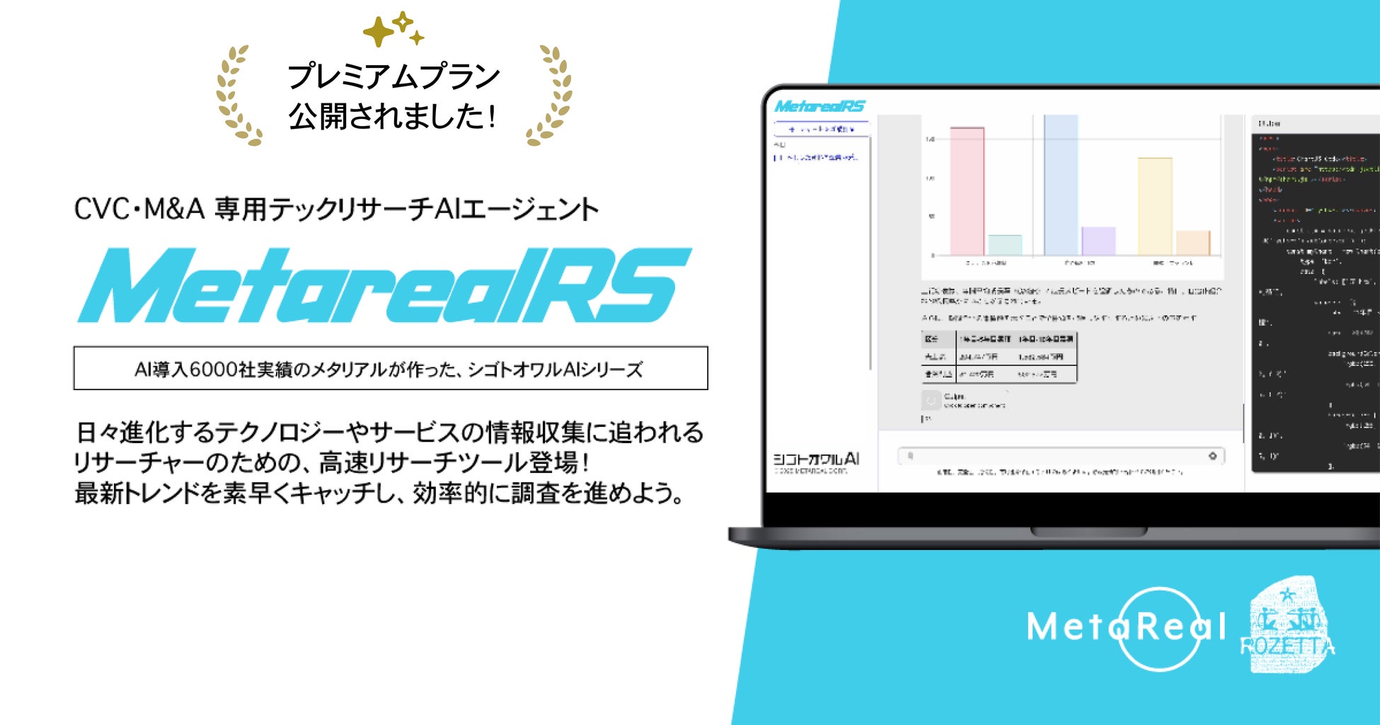 業種特化の専門AI開発・運営を行う株式会社メタリアル(本社:東京都千代田区、代表取締役:五石順一)は、経済指標と市場予測レポート作成AIエージェント「Metareal リサーチ(以下、Metareal RS)」が月額50,000円(税込)(20回/日、200回/月)で利用できるプレミアムプランを6月18日(水)より開始しました。