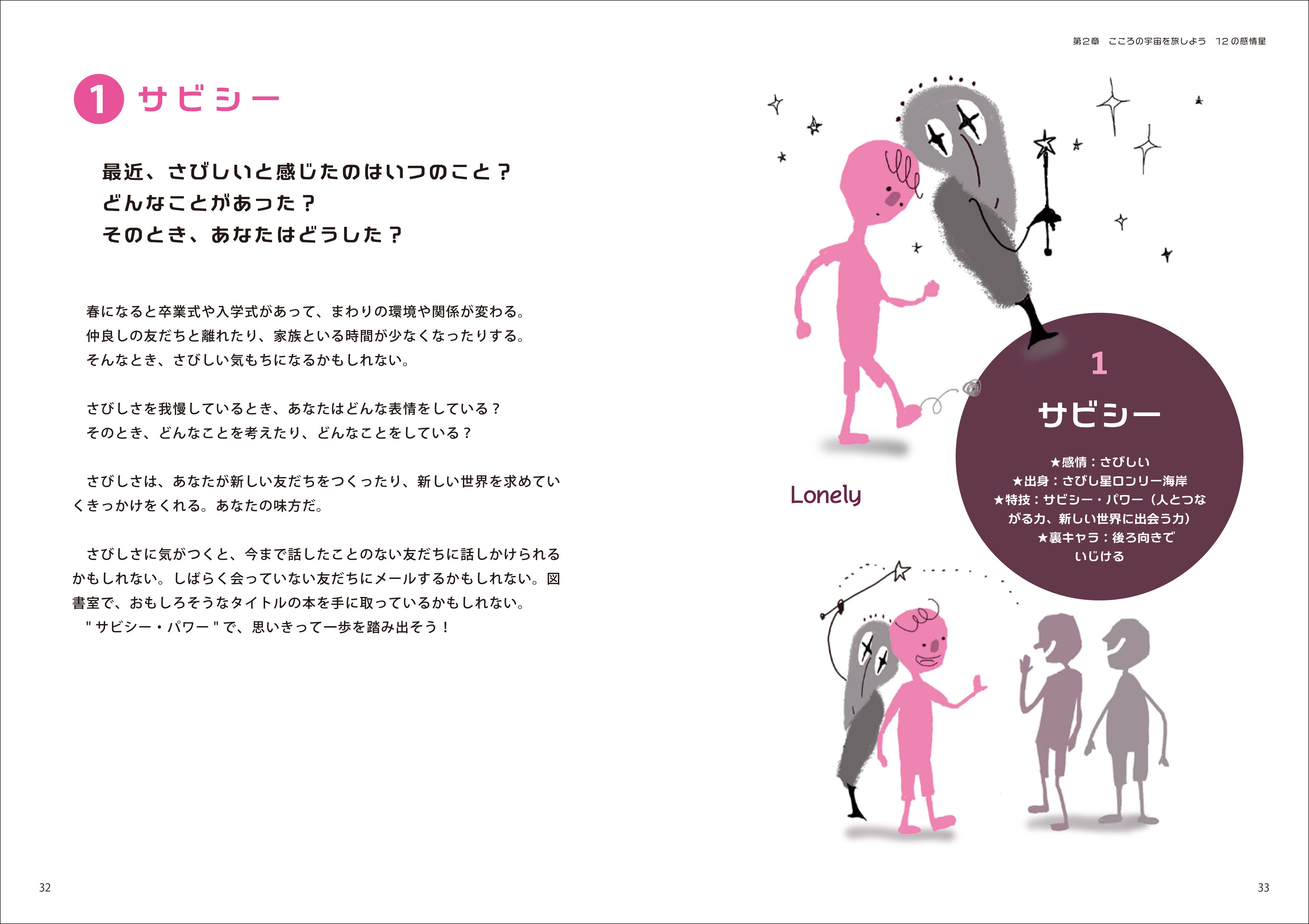この本では、自分の気もちを10のワークで探求し、こころの宇宙にいるユニークな12の感情星人といっしょに、感情を認めて、受け入れ、分かち合う力「エモーショナル・リテラシー」を身につける旅をします。