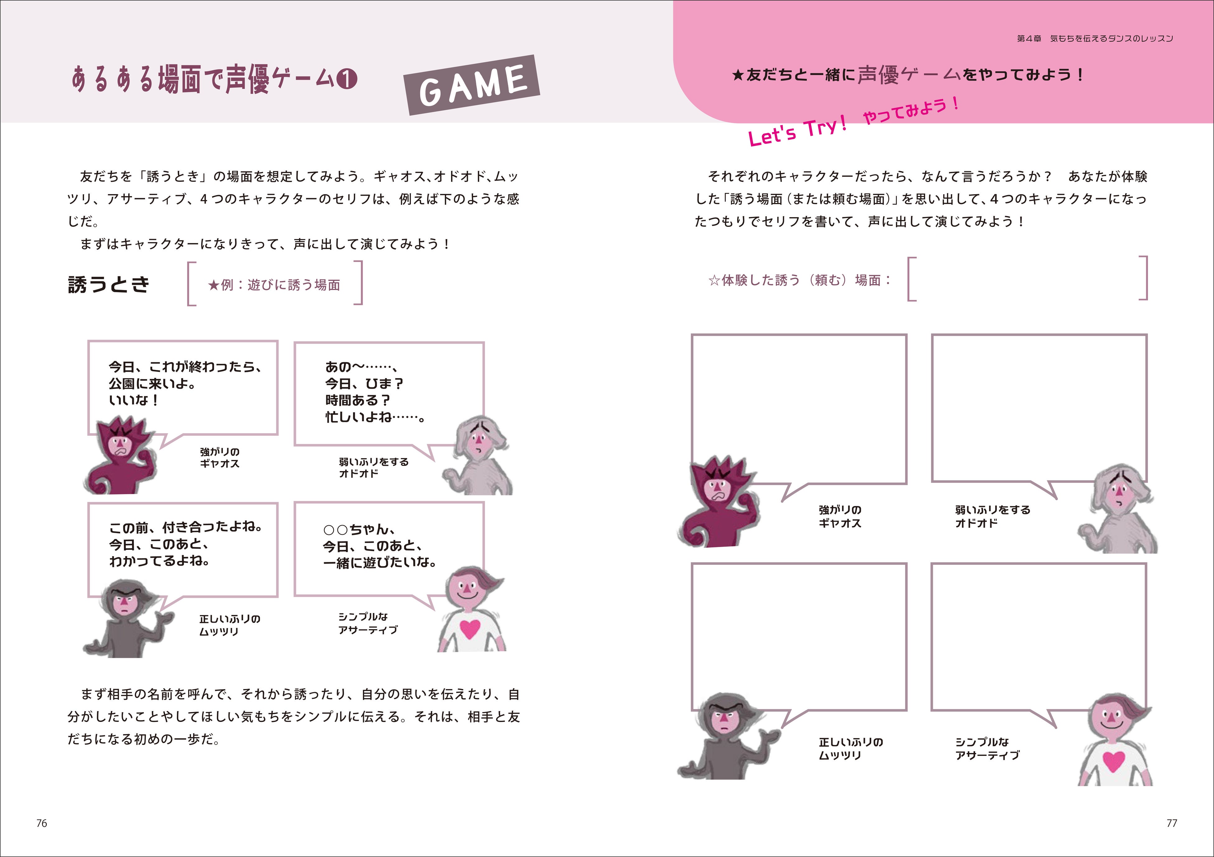 またクラスみんなでできる「DJゲーム」や「声優ゲーム」、ダンスでのコミュニケーションを通して、気持ちをじょうずに伝える方法をたのしく紹介します。