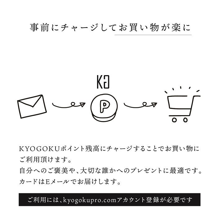 Kyogokuギフトカードは、Kyogoku公式内で使用できるポイントが購入できるシステムです。