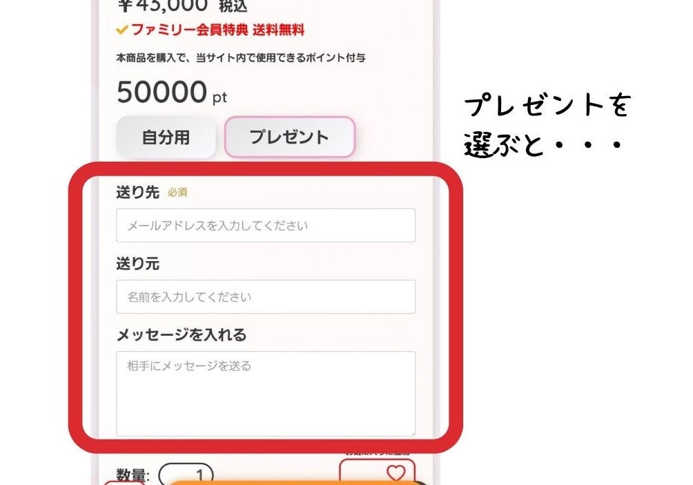 また、プレゼントとして送る場合はメッセージも入力可能。
