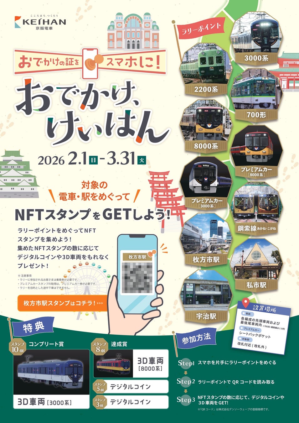 NFT スタンプラリープロジェクト 〜おでかけの証をスマホに“おでかけ、けいはん” NFT スタンプを集めて 3D 車両を GET しよう!〜/ 京阪ホールディングス株式会社、京阪電気鉄道株式会社(2026年1月23日)