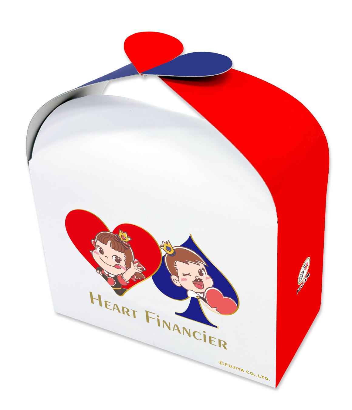 バレンタインのギフトにぴったりなハートの持ち手が可愛い箱に、ハート型のフィナンシェを詰め合わせました。「プレーン」と「ショコラ」の2種を2個ずつアソート。