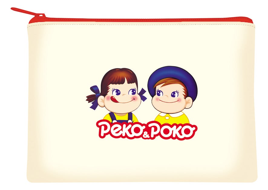 ペコちゃんとポコちゃんがプリントされた、使い勝手抜群のポーチ。ミルキークリームを閉じ込めたチョコレート「Milky Palette Chocolate」を詰め合わせました。裏面のミルキーフラワーもポイントです。