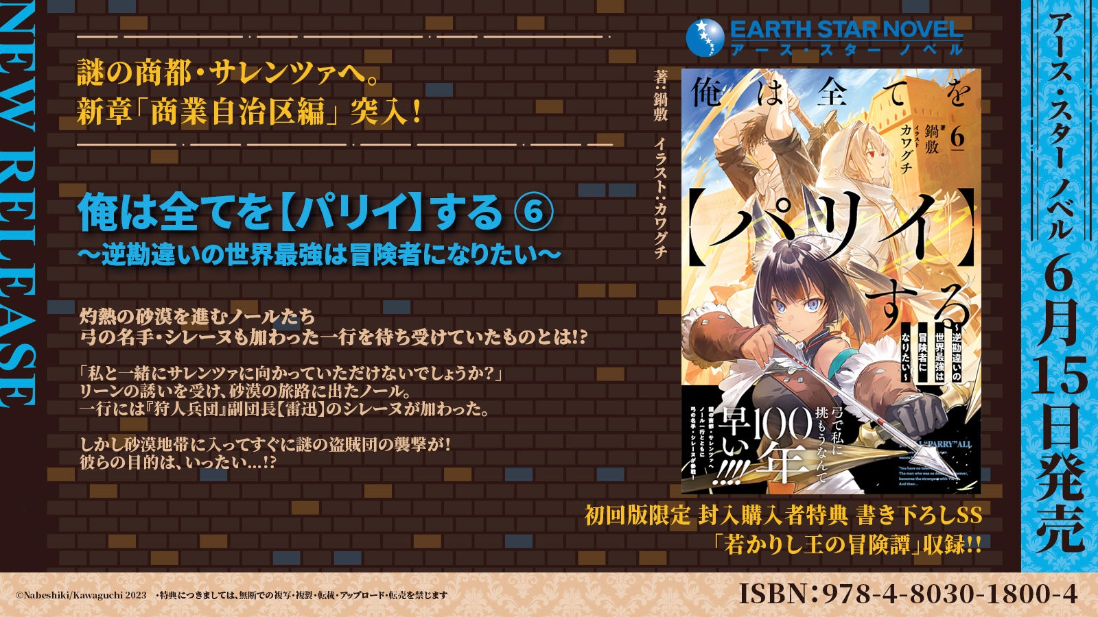 株式会社アース・スター エンターテイメント(東京都品川区)は【アース・スター ノベル】新刊を6月15日(木)より発売いたします。