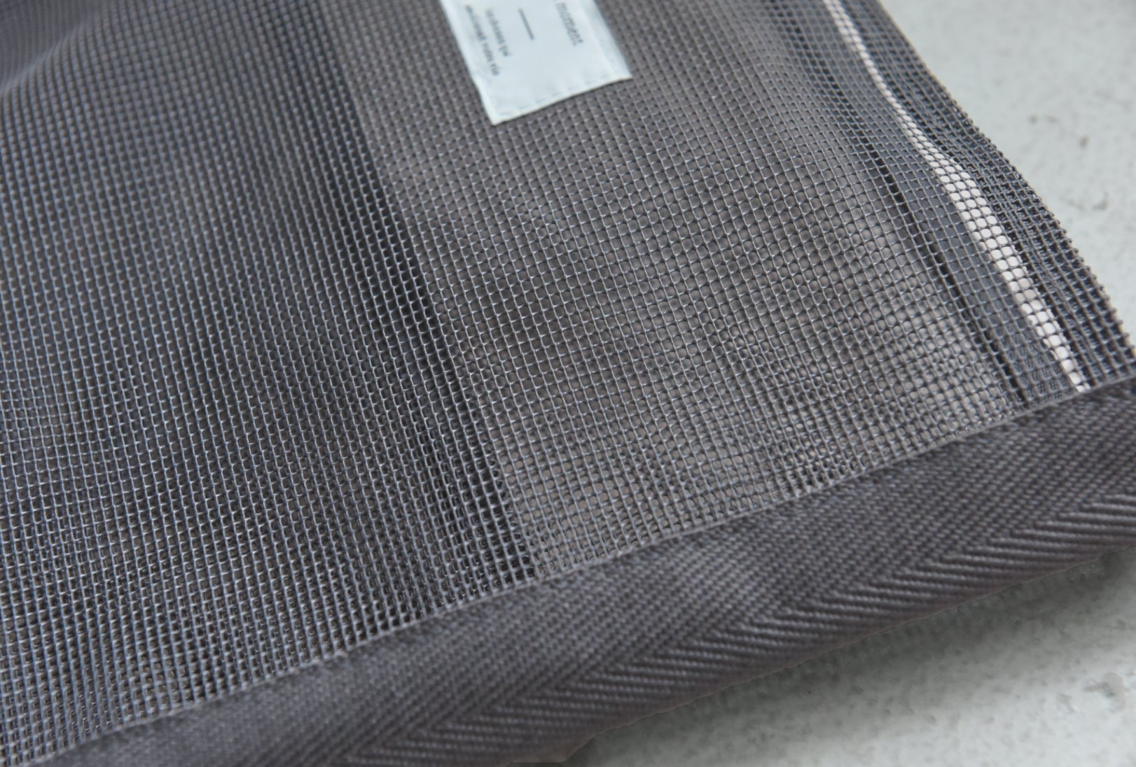 ハリのある丈夫なメッシュ素材で作られているので、通気性の良さはもちろん、重いものを入れても安心の耐久性。