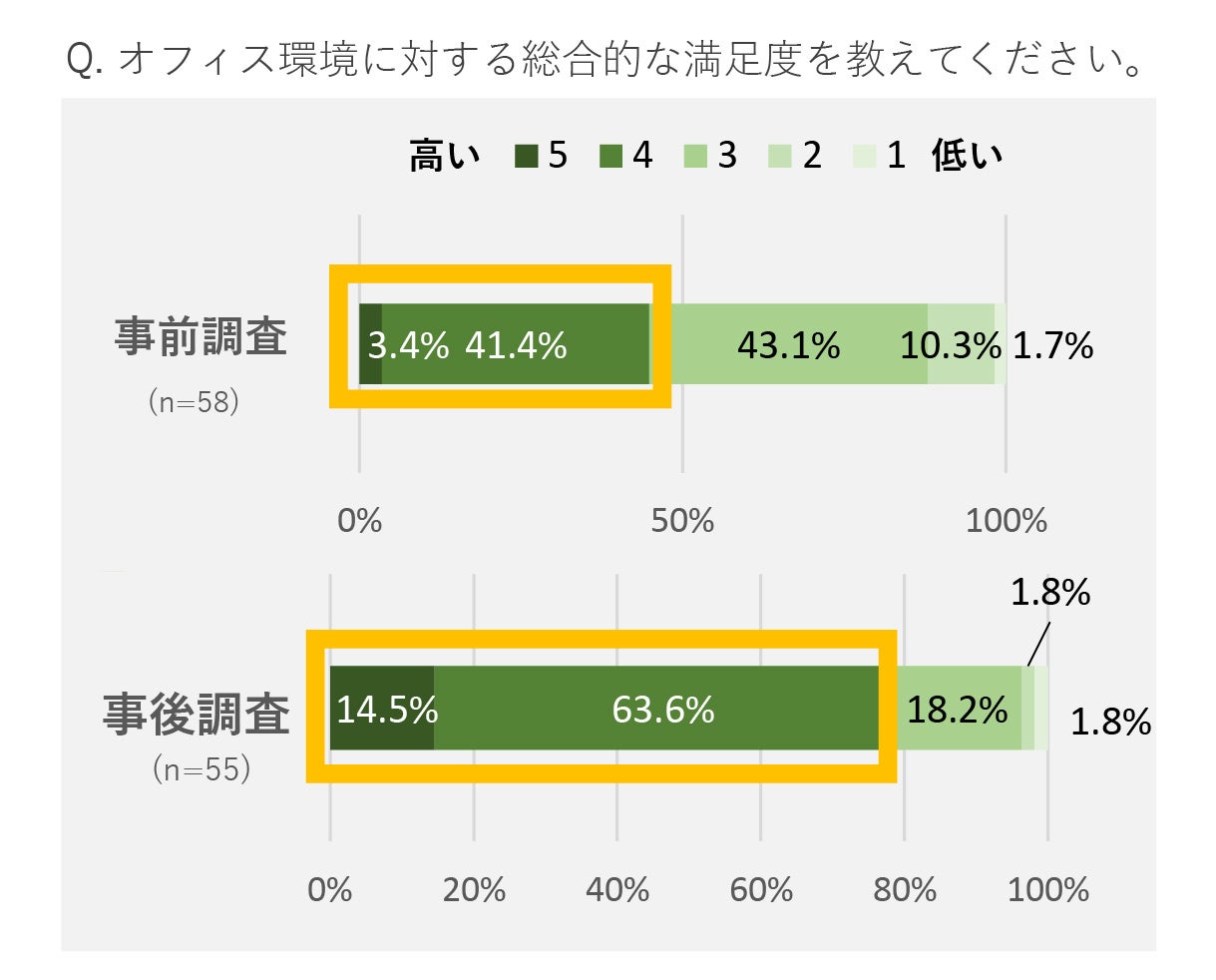 パッケージの開発に向け、2023年8月5日(土)から9月8日(金)までオカムラのラボオフィス「CO-EN LABO」(東京都渋谷区)にて「City Farming」の試験導入を行いました。試験導入後のアンケート調査の結果、他部門の人との会話の増加、癒しや気分転換になるなどの心理的な効果、オフィス環境に対する総合的な満足度の向上が確認できました。
