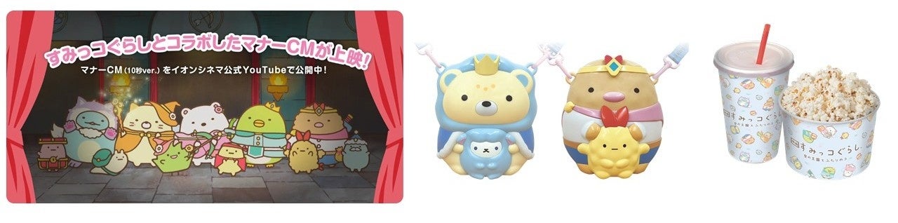 全国に「イオンシネマ」98劇場を運営するイオンエンターテイメント株式会社(本社:東京都港区、代表取締役社長 藤原信幸)は、2019年に初めての劇場アニメ『映画 すみっコぐらし とびだす絵本とひみつのコ』を公開して以来、2023年のシリーズ第3弾までの累計観客動員数が300万人を超える”大ひっと”シリーズ『映画すみっコぐらし』最新作の『映画 すみっコぐらし 空の王国とふたりのコ』の 10月31日(金)劇場公開を記念して、イオンシネマ限定の特別なコラボレーションが決定。コラボレーション第1弾として、全国のイオンシネマで『映画すみっコぐらし』×イオンシネマのオリジナル劇場マナー CMを絶賛上映中。また、映画公開日より映画オリジナル グッズを 全劇場の飲食売店・グッズ売場で販売します 。