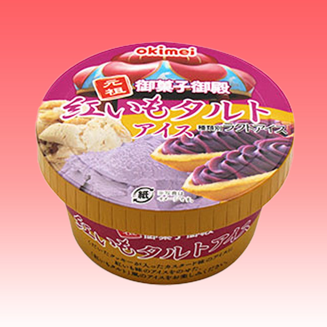 紅いも味のアイスをのせた、「紅いもタルト」風のアイスをお楽しみください。