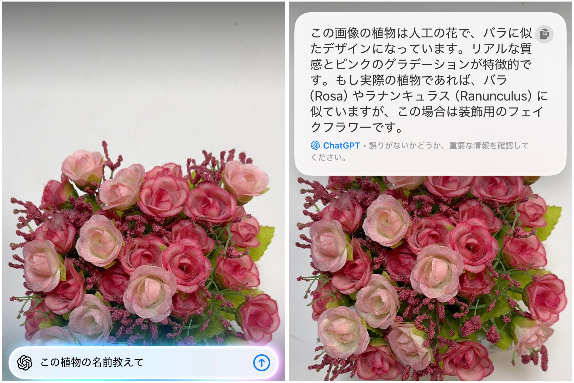 AI技術を駆使してカメラを通じてリアルタイムに情報を取得する機能です。ユーザーはカメラを対象物に向けるだけで、その物体や場所に関連する詳細なデータを瞬時に得ることができます。具体的には、テキストの翻訳、要約、読み上げ、植物や動物の識別、名刺から情報を読み取り企業の詳細情報の検索やメール作成を行ったりなど、さまざまな操作を行うことができます。また、商品やサービスの情報をすぐに調べたい場合に即座にインターネット上の情報にアクセスでき、ChatGPTに質問することも可能です。