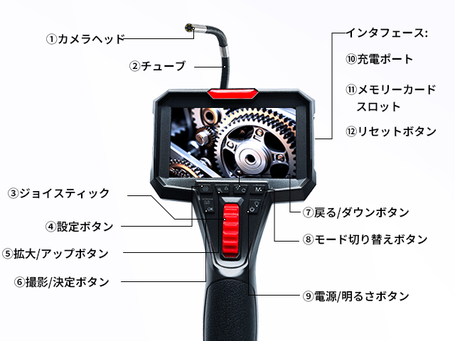 特に便利なのは、ローラ式ジョイスティックです。片手で直感的に操作でき、カメラヘッドをスムーズに動かすことができます。家庭の配管チェックから、車や機械のメンテナンスまで、さまざまなシーンで活躍します!