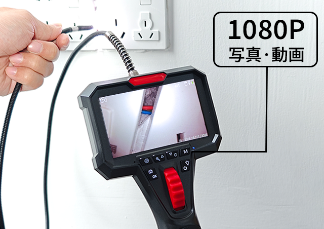 フルHD(1920×1080px)高画質カメラを搭載し、目で確認できないエンジンや配管内部などをはっきりと撮影できます。100万画素の静止画モードも搭載し、機密機械の細部まで鮮明に記録できます。