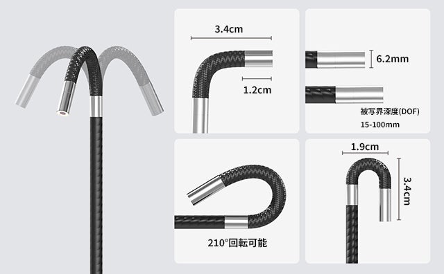 また、チューブの直径はわずか6.2mmなので、パイプなどの狭い場所も容易に通過できます。普段見えにくい箇所も簡単に覗くことができ、作業時間の短縮に非常に役立ちます。