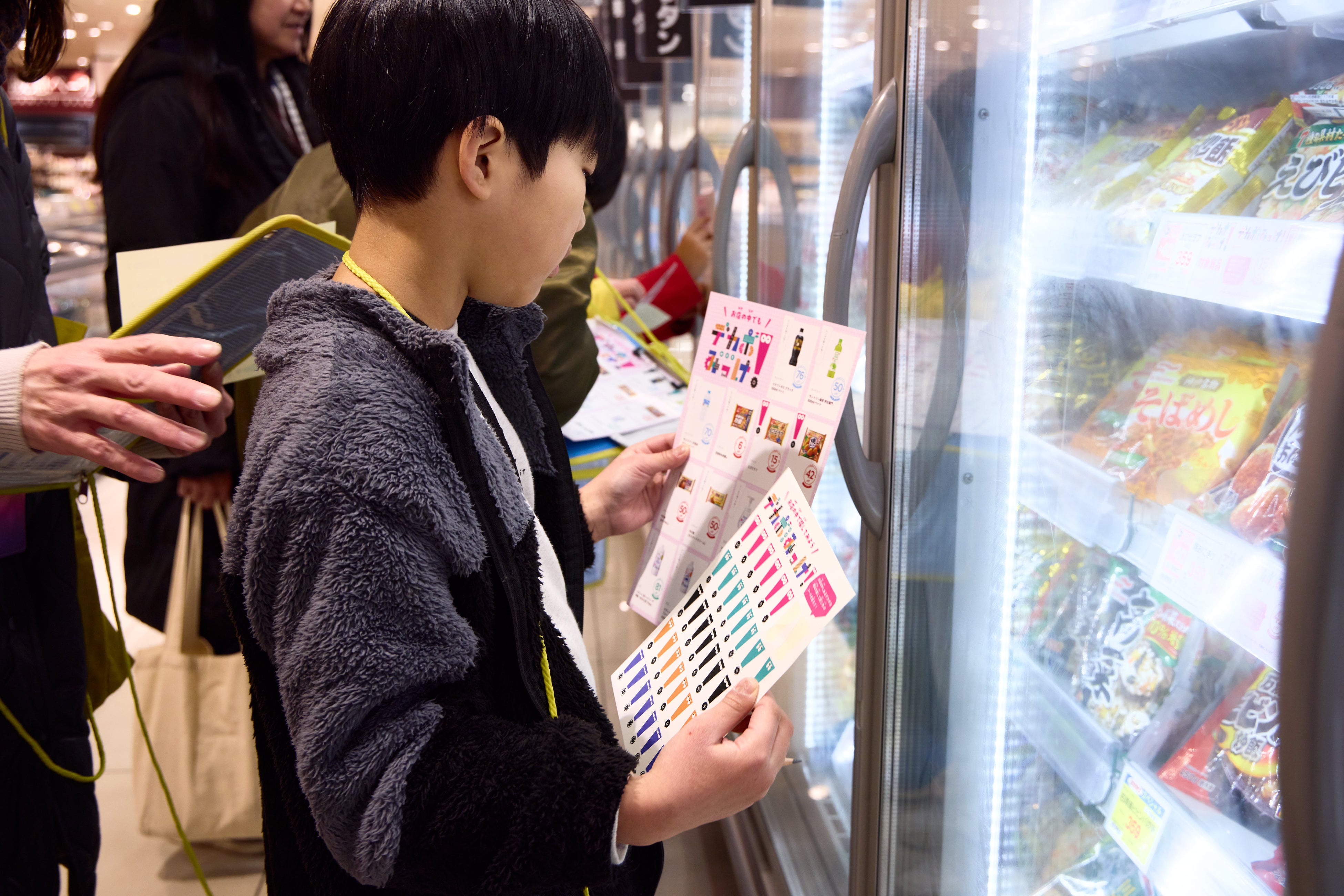 売り場でデカボスコア商品を探す子どもたちの様子