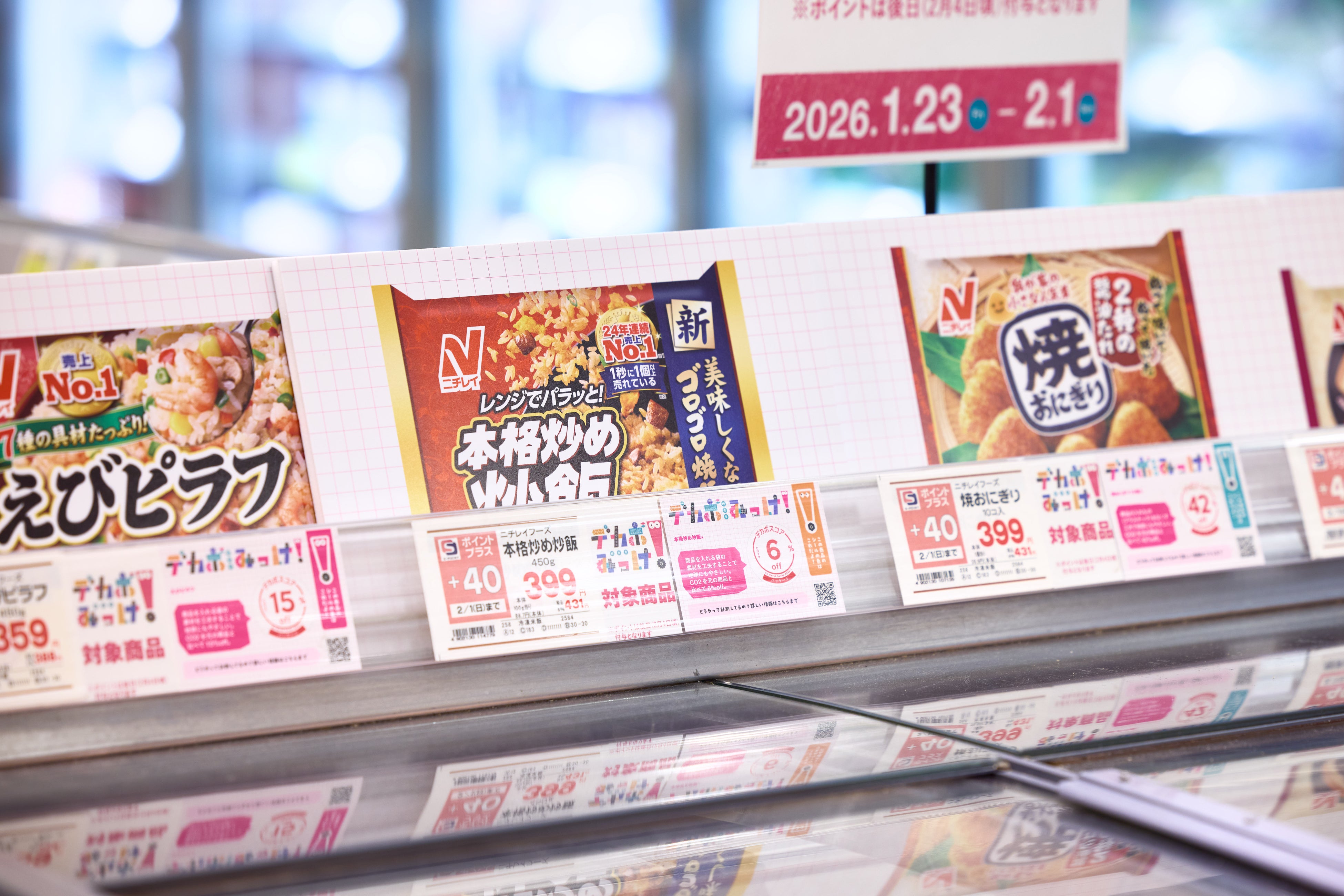 商品にデカボスコアを表示した売り場の様子