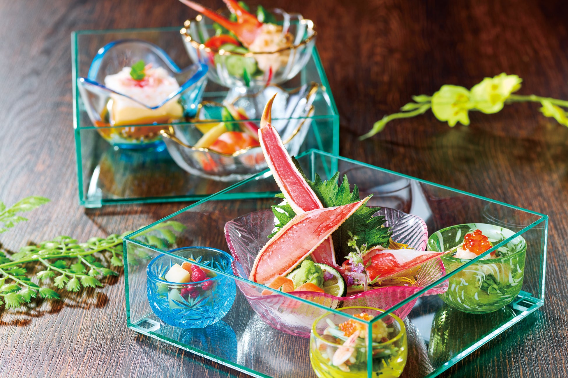 かに釜めしに加えて、見た目も華やかなクリスタル重が至福の時間を演出