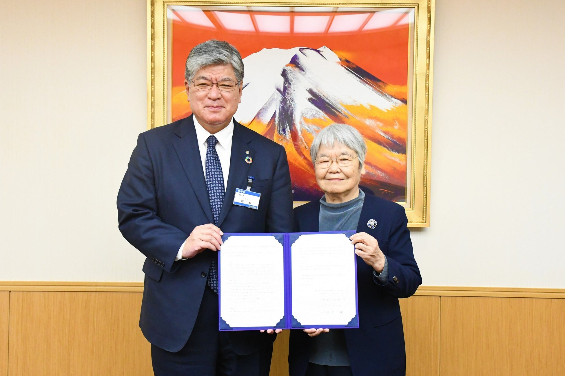 令和7年3月6日(木)、板橋区役所で行われた協定の締結式において、東京YWCAの坂口和子(さかぐち・かずこ) 代表理事と坂本健(さかもと・たけし)板橋区長との間で協定書が取り交わされました。締結式では、坂口代表理事から「板橋区が、きょうだい児支援を施策に取り入れてくださったことで、障がい児とその家族への理解を深め、誰もが共にわけへだてなく生きていける地域になるものと信じています」と話があり、坂本区長からも「区としても、きょうだい児同士が関わることで気持ちを共有できる場など、きょうだい児を支援する体制の構築に向け、取り組んでいきたい」と話し、支援に向けた今後の連携についてお互いに確認しました。