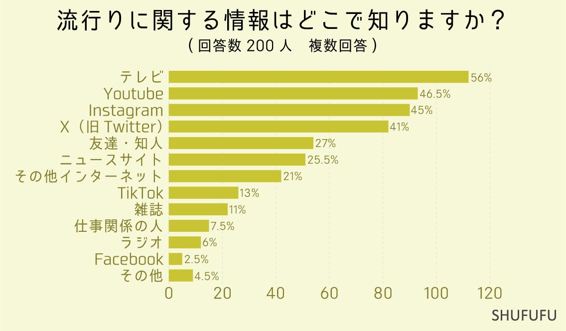 流行を気にかけている人は"44%"!情報源はTV、YouTube、SNS何で知る?気にするジャンルと理由を200人に聞いてみました
