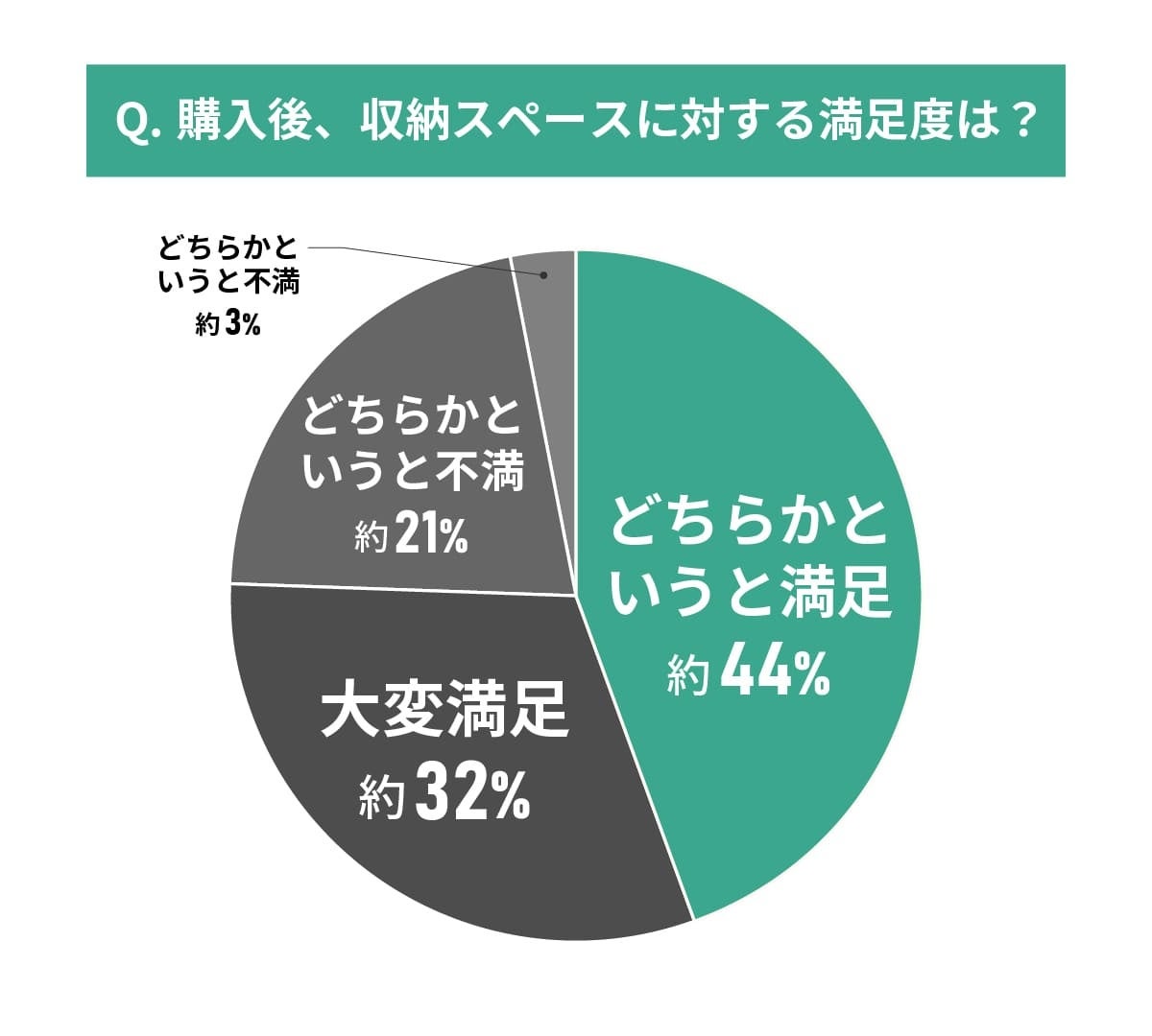 購入後、実際に住んでみて感じる収納スペースへの満足度を調査しました。