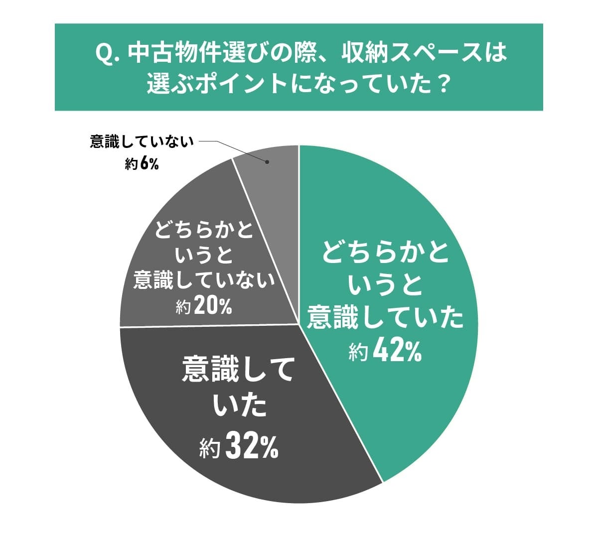 全体の約74%が「意識していた」または「どちらかというと意識していた」と回答しており、多くの購入者が物件選びの段階で収納スペースを重要視していることがわかります。