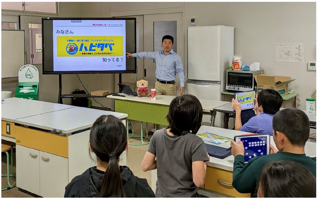 各自治体や小学校と連携し、食品ロス削減や資源リサイクル活動について、『らこぽん学習帳』を 活用して、わかりやすく楽しみながら出前授業を実施しています。
