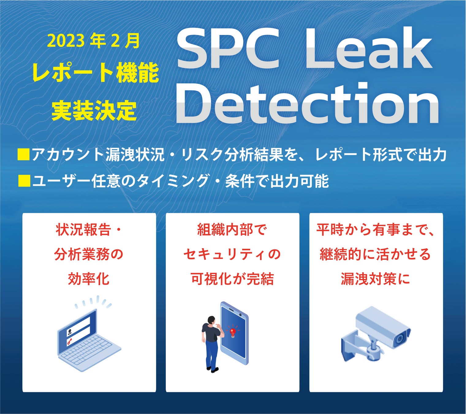 漏洩アカウント自動検知サービス『SPC Leak Detection』、リスク分析・報告業務に活用でき、漏洩概況を可視化するレポート作成機能を実装