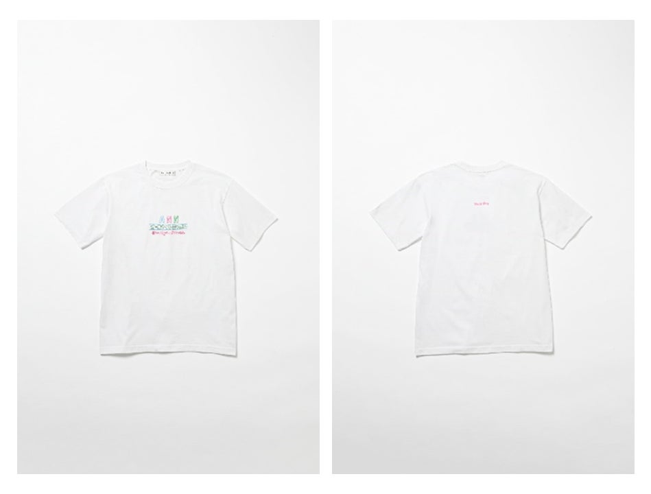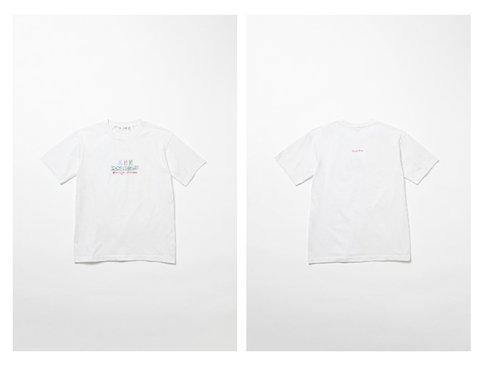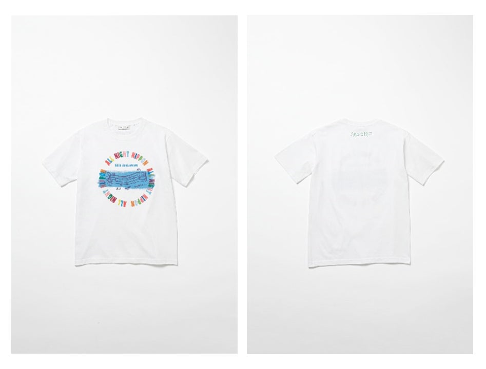 「TシャツのデザインはAMラジオリスナーのLOVE &PEACEな感じをイメージしました。真ん中に書かれた譜面のメロディーは私にとって青春のメロディー。今でもあのオ〜ルナ〜イトニッポン!のジングルを聴くと、なんだか甘酸っぱい気持ちになります。」