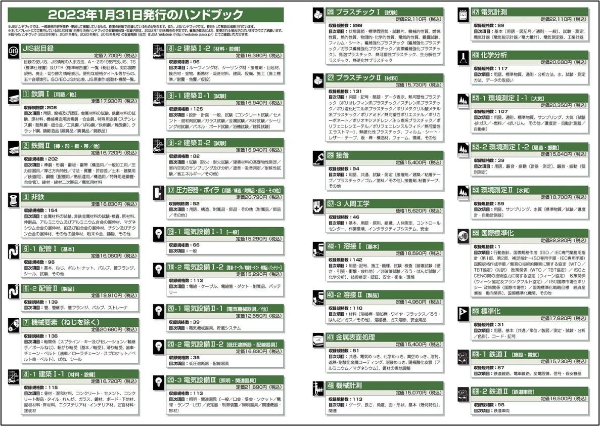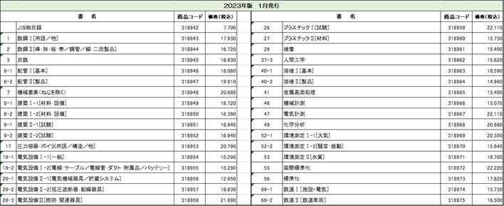 【最新版】2023年1月発行分 JISハンドブック好評発売中!