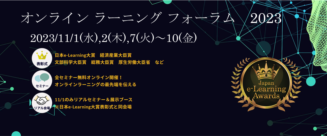 リアル+オンラインのハイブリッド形式で11月1日(水)~10(金)開催【オンラインラーニングフォーラム2023】 申込受付開始。約100講演が事前申込で聴講無料