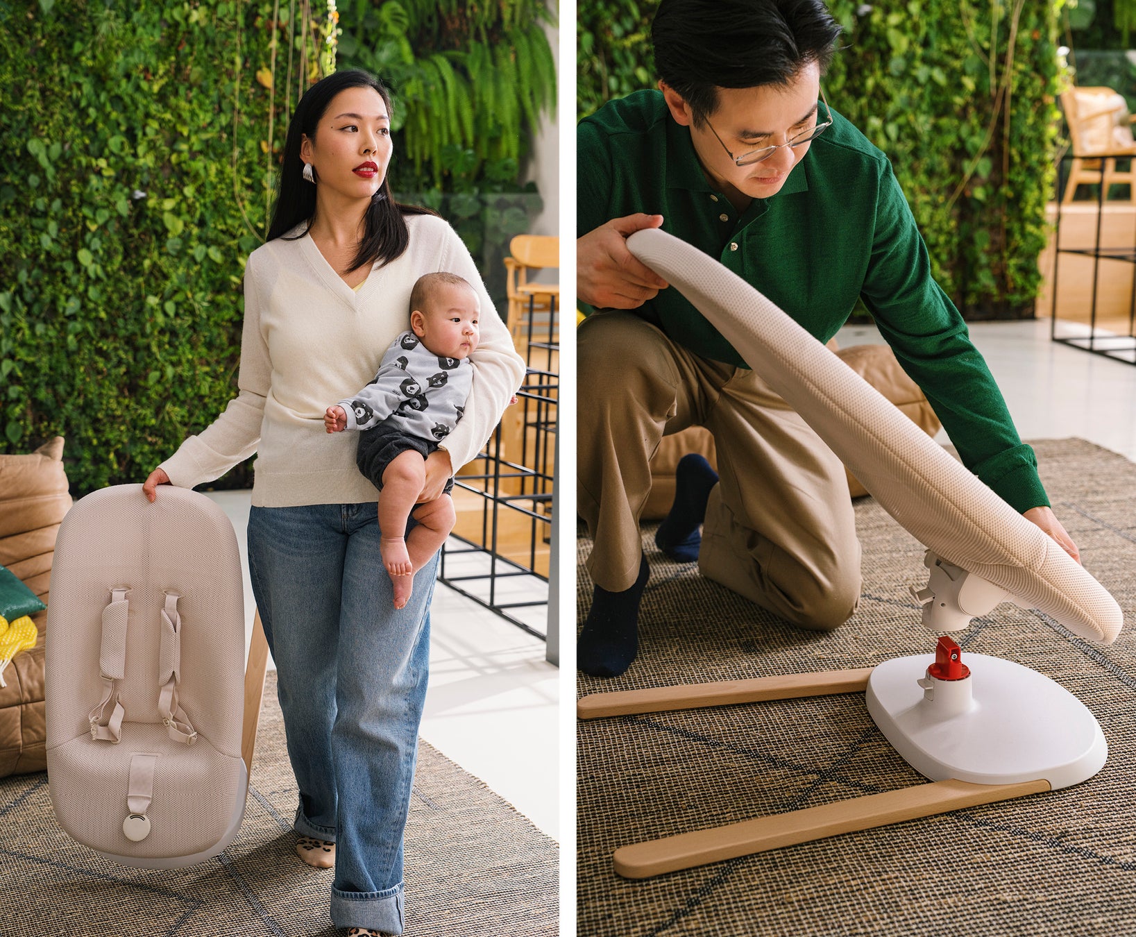 この度、まるで腕に抱かれてあやされているような縦揺れと横揺れの2つを組み合わせた新しいバウンサー、「ストッケ ヨガ ベビーバウンサー」を2025年4月2日 (水) より発売いたします。どんなインテリアにも溶け込むライトサンドカラーとウッド素材のレッグは、北欧ブランドStokkeらしいミニマルでスタイリッシュなデザインです。