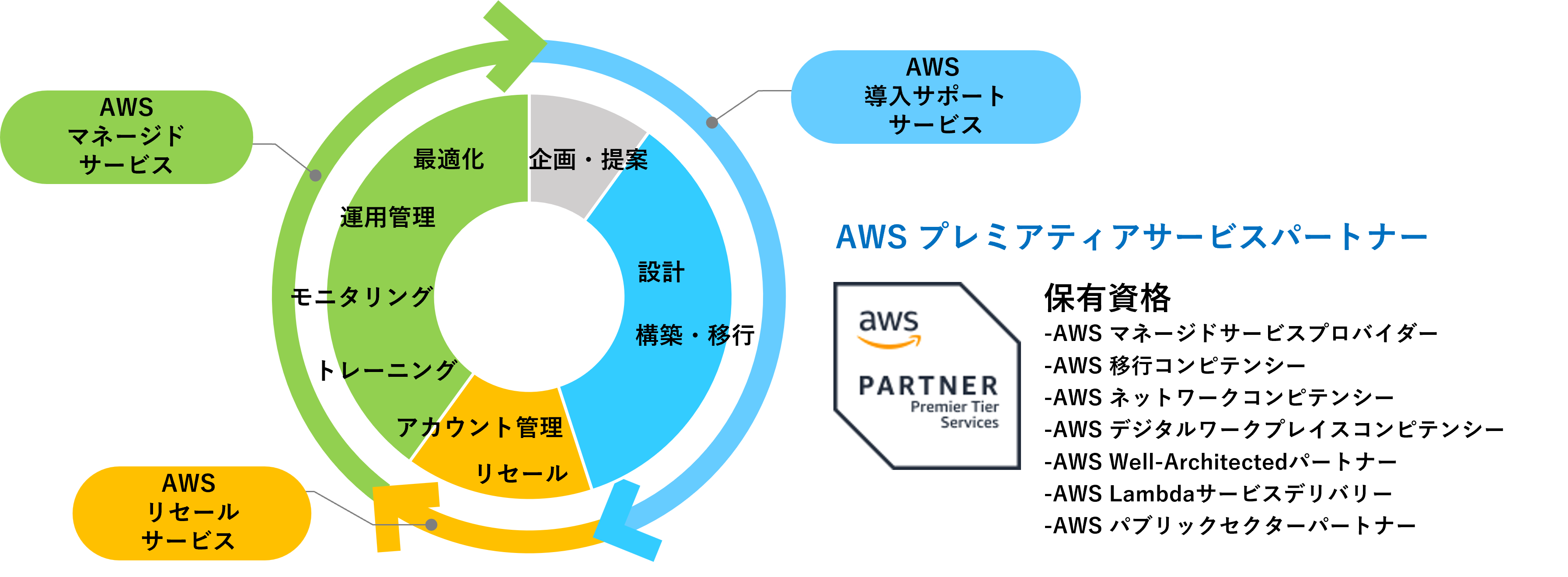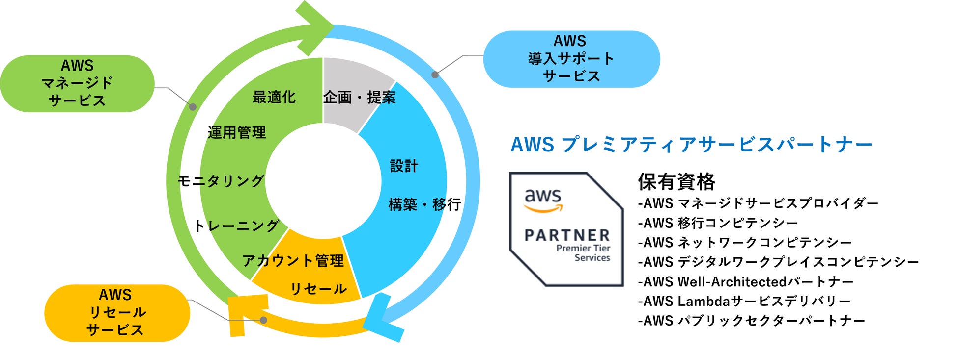 *当社は、AWSのパートナー認定制度であるAWSパートナーネットワーク(APN)において、長年の功績や高い技術力やサポート力、高品質なサービス、豊富な成功事例が高く評価され、「AWSプレミアティアサービスパートナー」として認定されています。