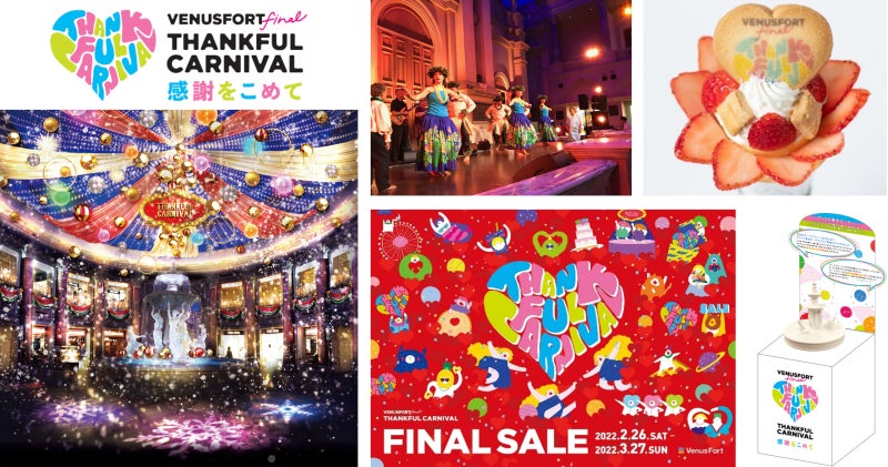 ヴィーナスフォート各店舗では、11月19日(金)より22年間の感謝を込めたファイナル企画「VenusFort Thankful Carnival・FINAL FAIR」を展開しています。2月26日(土)~2022年3月27日(日)の期間には、フェア第三弾として、「Thankful Carnival MENU」の第三弾メニューの展開や「VenusFort Pet Fair FINAL」を開催します。
