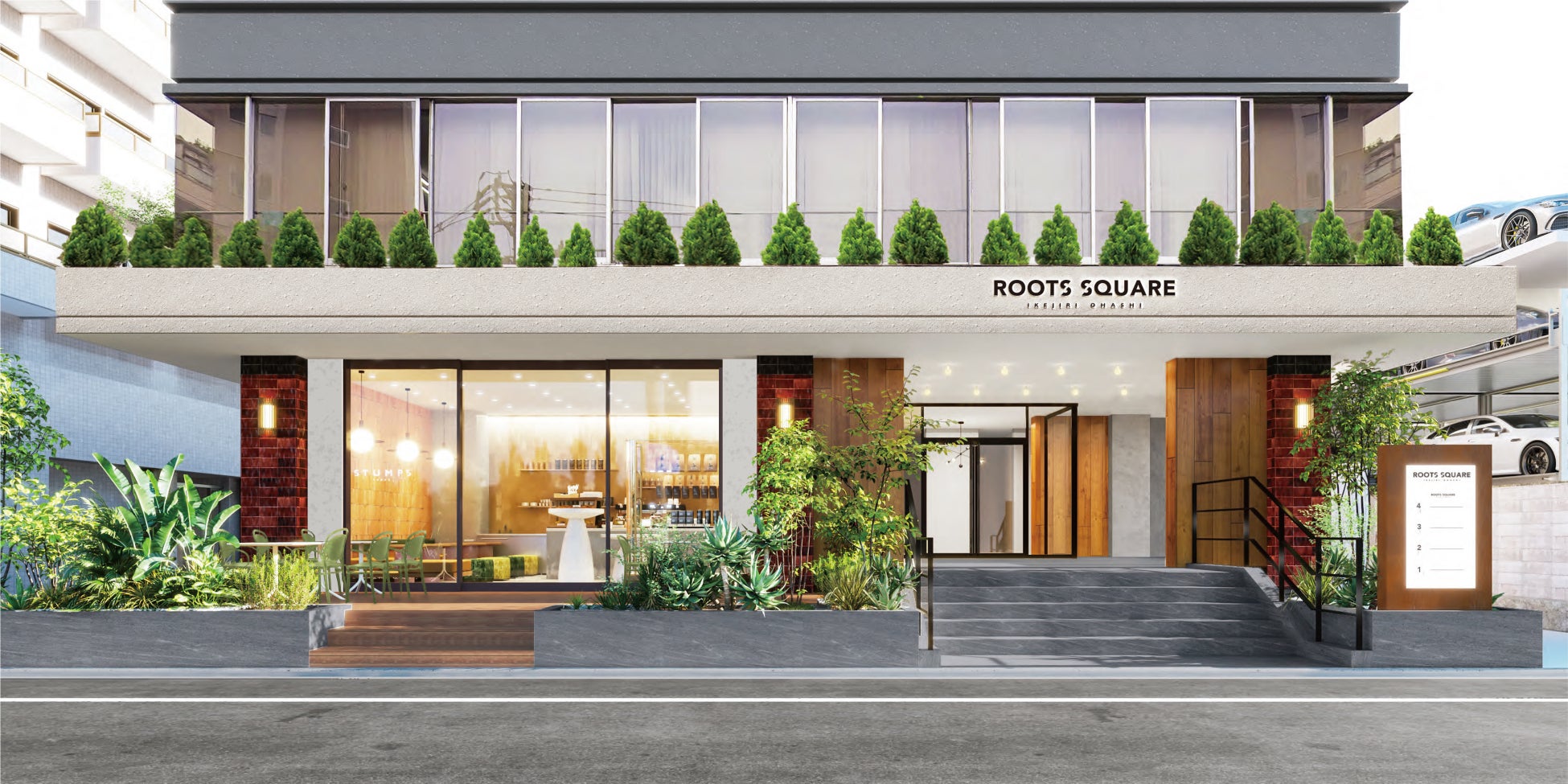 「ROOTS SQUARE」は、この場所から根を張り出し、ステップアップを目指すスタートアップ企業・クリエイティブワーカーを支え、様々な文化がミックスされた池尻大橋の新たなビジネス・カルチャーシーンを創出する場を目指します。