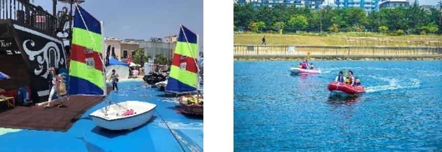 水上オートバイ・小型ヨットは実際に乗って記念写真を撮ることができます。