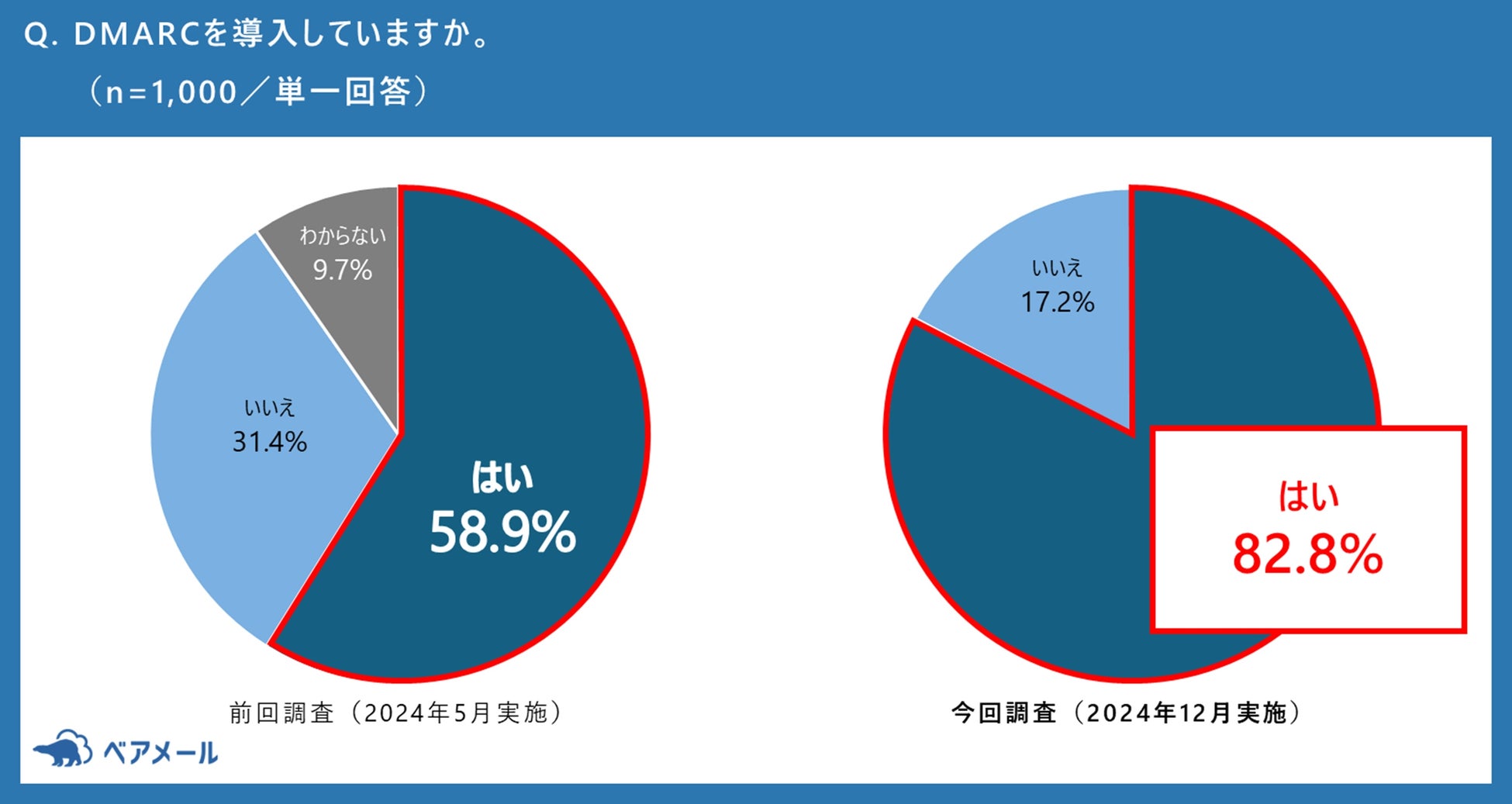 全体の約8割が「DMARCを導入している」と回答し、導入率は大幅にアップ。
