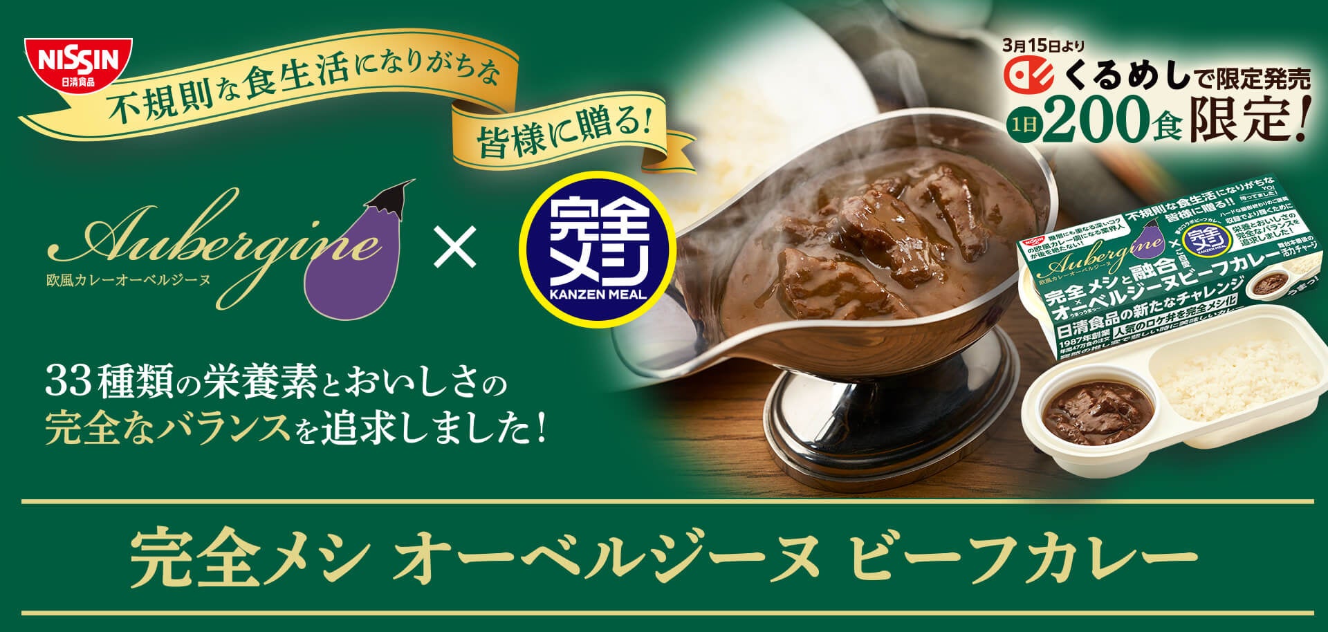 不規則な食生活になりがちな皆様に贈る!人気のロケ弁を「完全メシ」化!「完全メシ オーベルジーヌ ビーフカレー」を2024年3月4日(月)から、くるめし弁当限定で発売開始