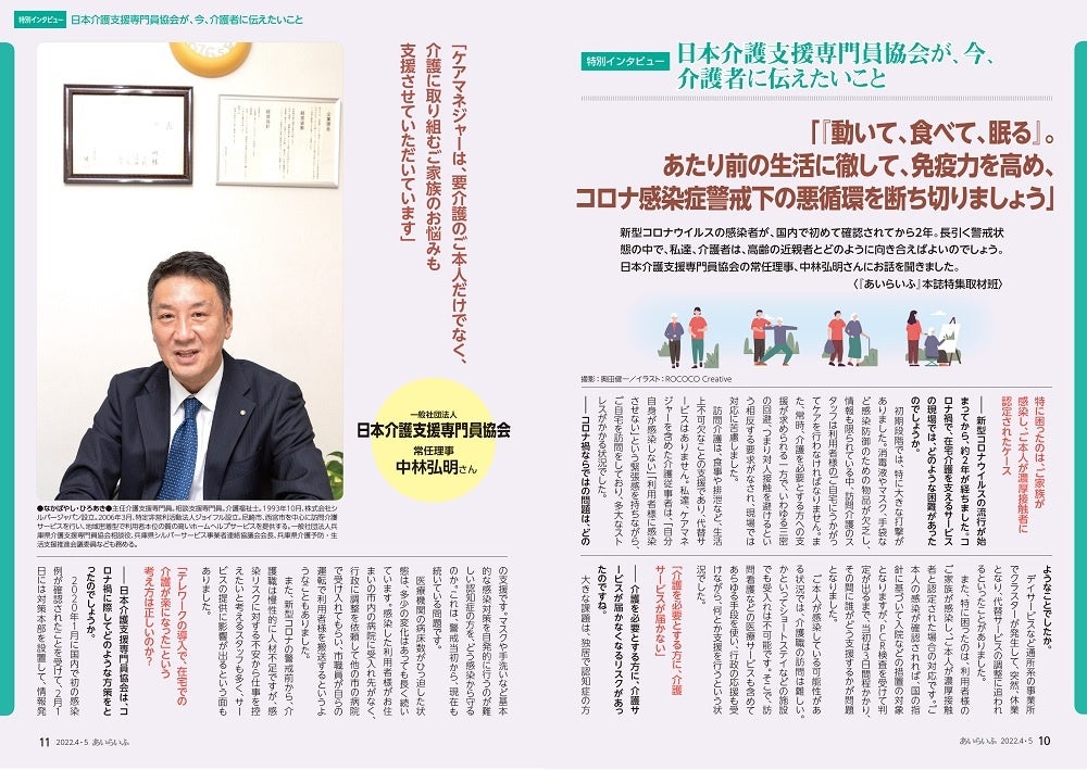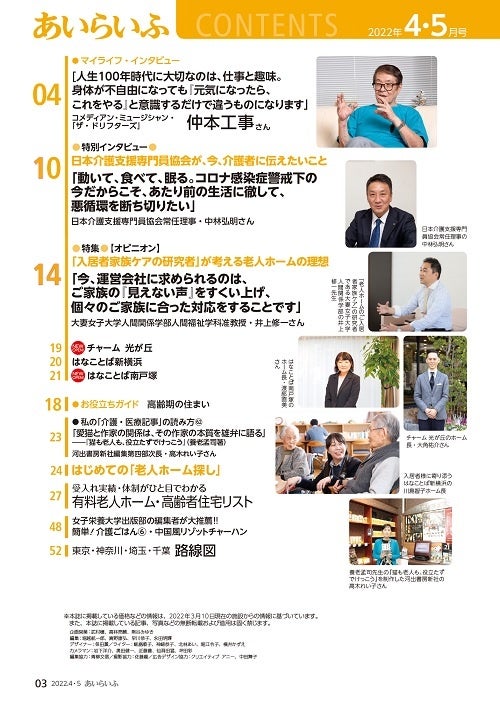 株式会社あいらいふ(本社:東京都千代田区 代表者:藤田敦史)は、介護情報誌『あいらいふ』(2022年4-5月号)を、3月24日(木)に発刊いたします。